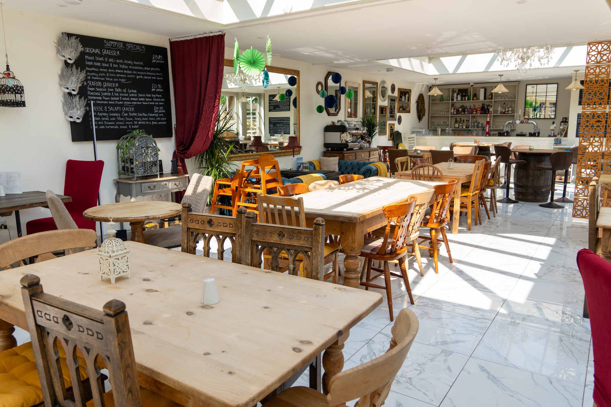 The Orangery’s striking architecture, with its glass façade and intricate Victorian details, sets the stage for a truly memorable dining experience. Inside, you’ll discover an eclectic fusion of Mediterranean inspiration and local heritage. Sunlight pours through tall windows, illuminating a stylish interior where modern design meets vintage character. From reclaimed wood furnishings and wrought-iron features to contemporary art and soft ambient lighting, every element has been carefully curated to create a warm and inviting atmosphere.